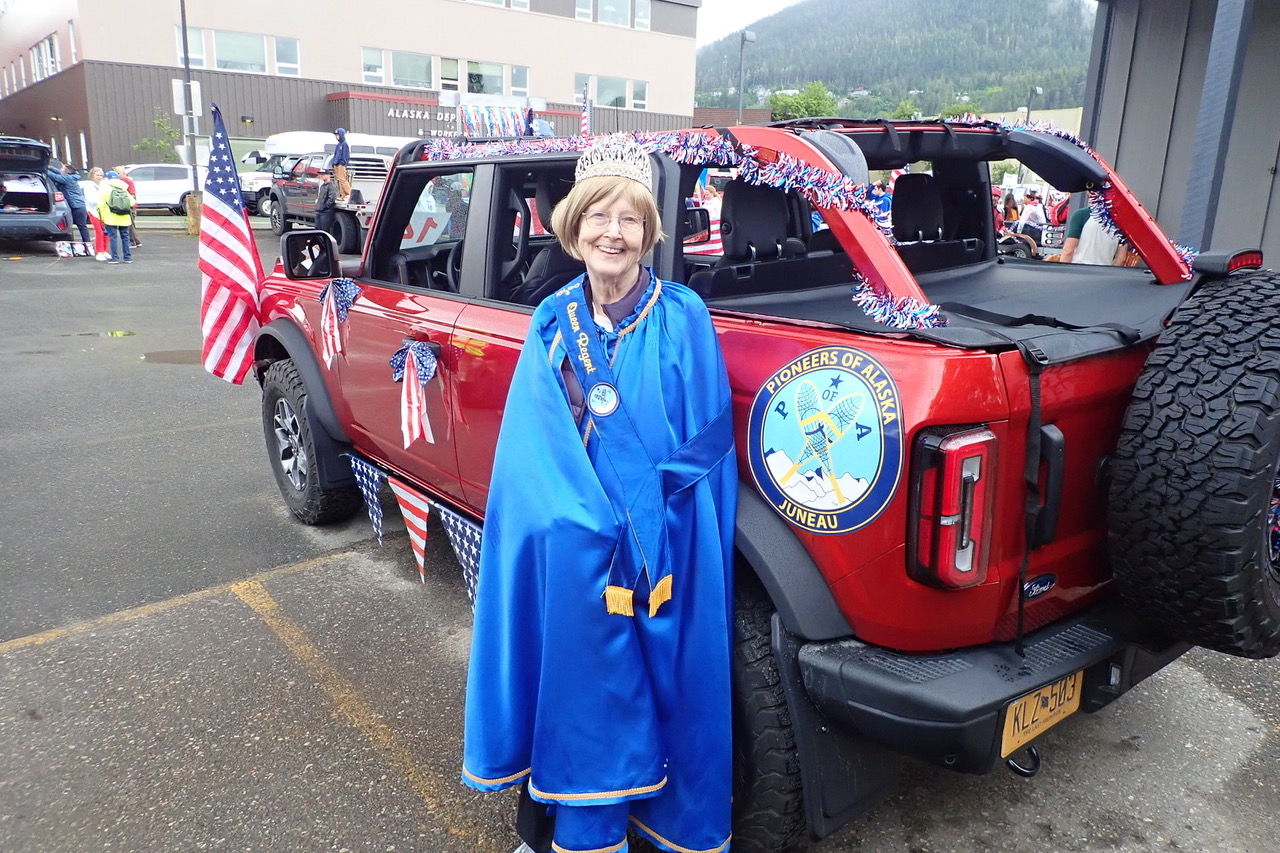 Our Queen Cheryle Jebe reigned supreme in President Brad Austin’s sassy new rig as they made their way through the Juneau Independence Day parade.
