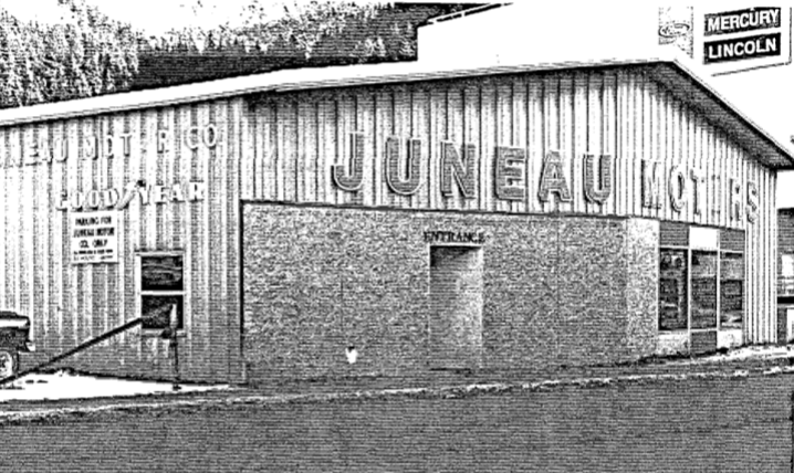 The Juneau Motor Company, 11 Egan Drive, is situated on the corner of Egan Drive and Main Street at the base of Telephone Hill on Block F; Lots 7-8.